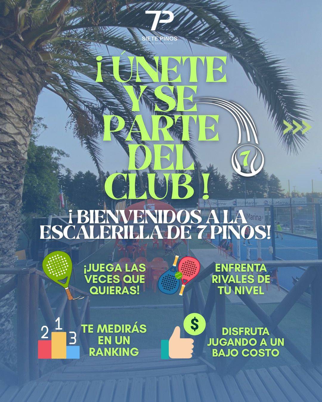 Club Siete Pinos los invita a ser parte de la 𝗘𝗦𝗖𝗔𝗟𝗘𝗥𝗜𝗟𝗟𝗔 𝗗𝗘 𝗣𝗔́𝗗𝗘𝗟 𝗗𝗘 𝟳 𝗣𝗜𝗡𝗢𝗦 , para que puedas medirte siempre con rivales distintos pero de tu misma categoría y por los puntos